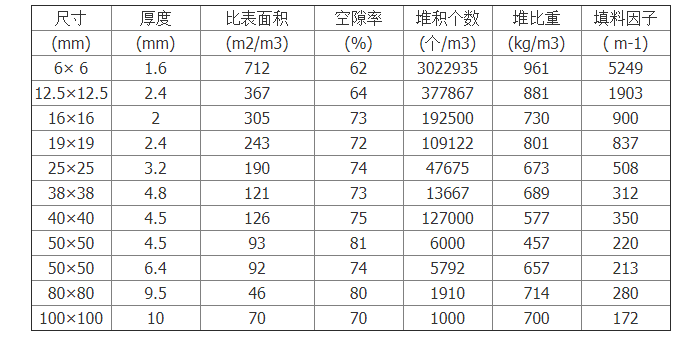 散堆填料拉西環(huán)具有優(yōu)異的耐酸耐熱性能,能耐除氫氟酸以外的各種無機酸、有機酸及有機溶劑的腐蝕,可在各種高,低場合使用,應(yīng)用范圍十分廣泛。