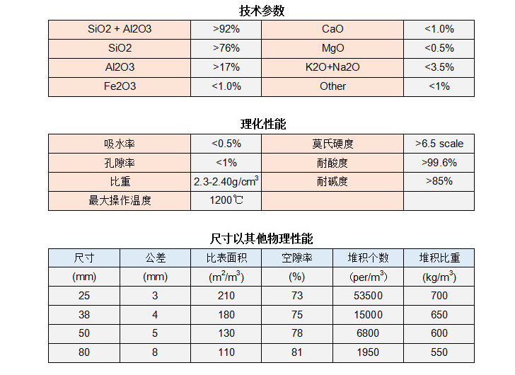 陶瓷鮑爾環(huán)具有優(yōu)異的耐酸耐熱性能,能耐除氫氟酸以外的各種無機(jī)酸、有機(jī)酸及有機(jī)溶劑腐蝕,可在各種高溫場合使用,應(yīng)用范圍十分廣泛,可用于化工、冶金、煤氣、環(huán)保等行業(yè)的干燥塔、吸收塔、冷卻塔、洗滌塔、再生塔等。
